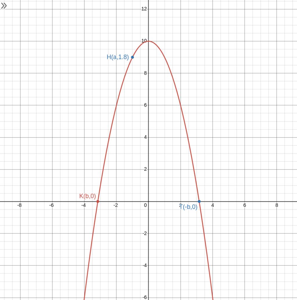 $\to \begin{cases}0=m\cdot (\dfrac94)^2+n\\ 1.8=m\cdot (-\dfrac{13}4)^2+n\end{cases}$