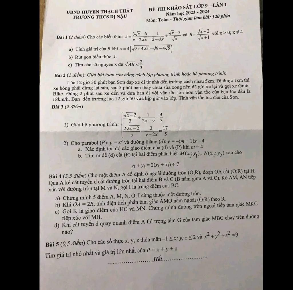 ĐỀ THI KHẢO SÁT LỚP 9 – LẦN 1