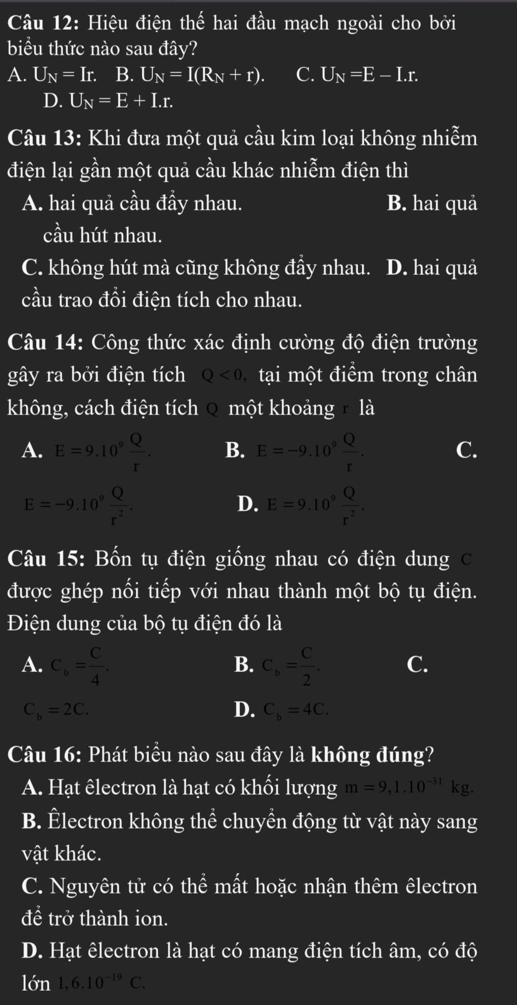 \(E = - {9.10^9}.\dfrac{q}{{{r^2}}}\)