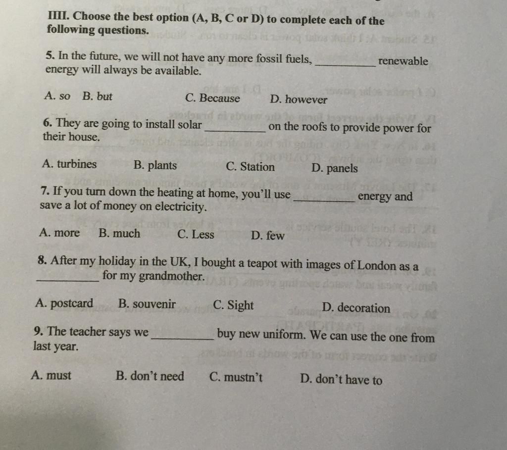 5 . Vì trong tương lai chúng ta sẽ không có nhiên liệu hóa thạch nữa NHƯNG năng lượng tái tạo được vẫn luôn có sẵn