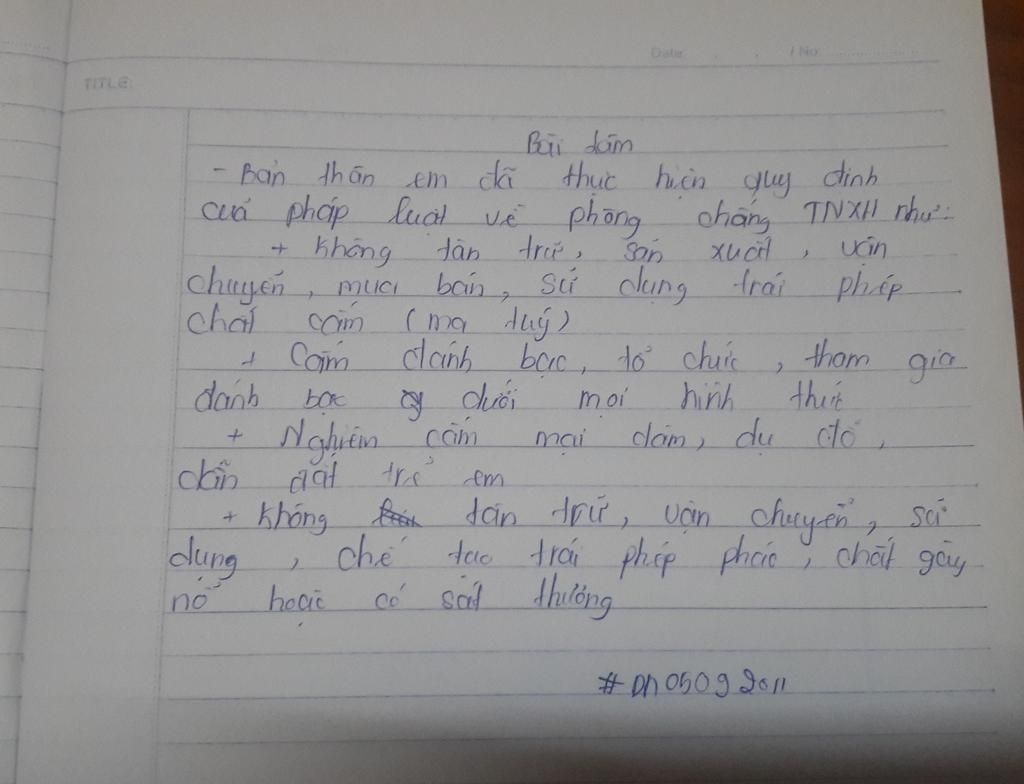 Bản thân em đã thực hiện những quy định của pháp luật về phòng chống TNXH như thế nào?