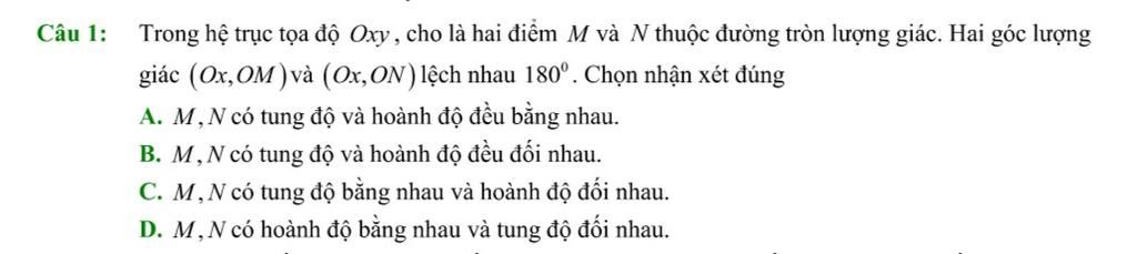 Từ hình vẽ, ta thấy `M` và `N` có tung độ bằng nhau.