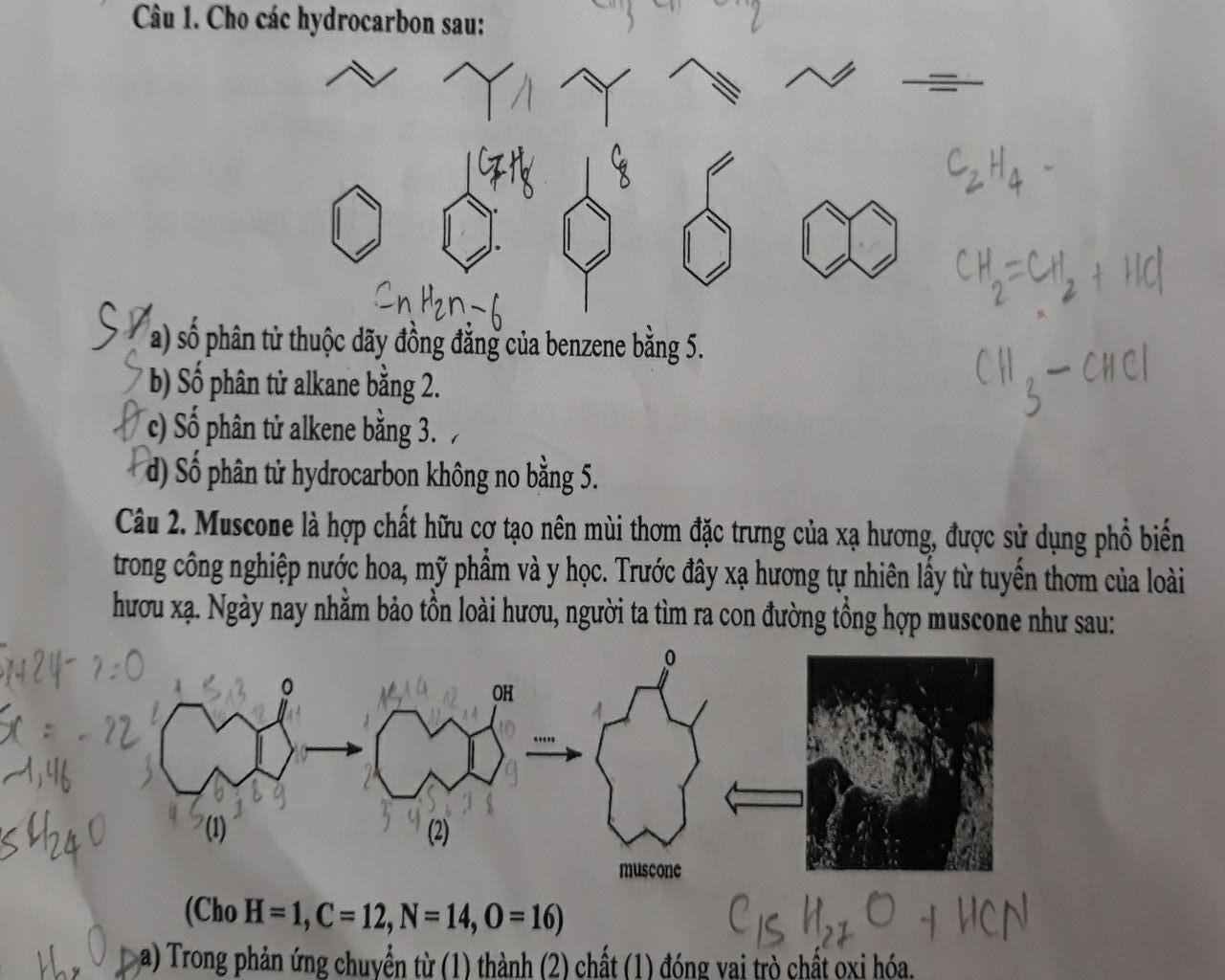 $\rm a)$ Sai. Số phân tử thuộc dãy đồng đẳng của benzene bằng $3$, công thức số $(7),(8),(9)$.