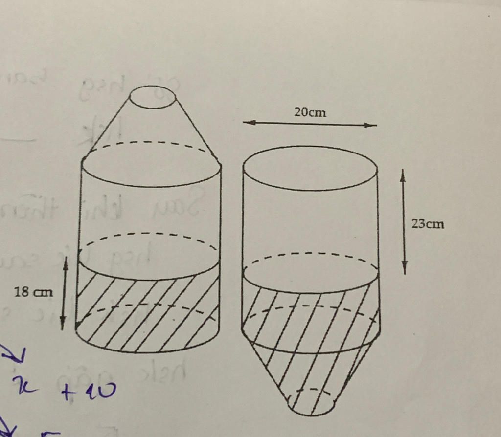 Bán kính đáy bình: $r_1 = 20/2 = 10$ cm.