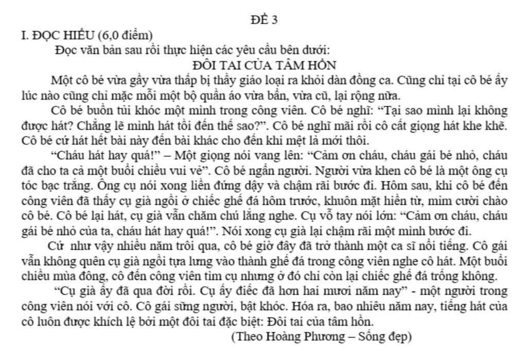 Câu 6 (0,5 điểm). Từ “đồng ca” trong câu “Một cô bé vừa gầy vừa thấp bị thầy giáo loại ra khỏi dàn đồng ca” có nghĩa là gì?