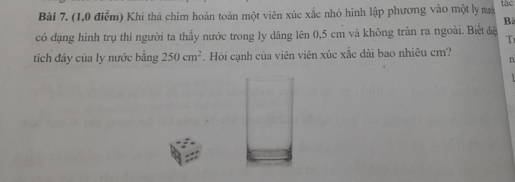 Thể tích nước dâng lên chính bằng thể tích hình lập phương