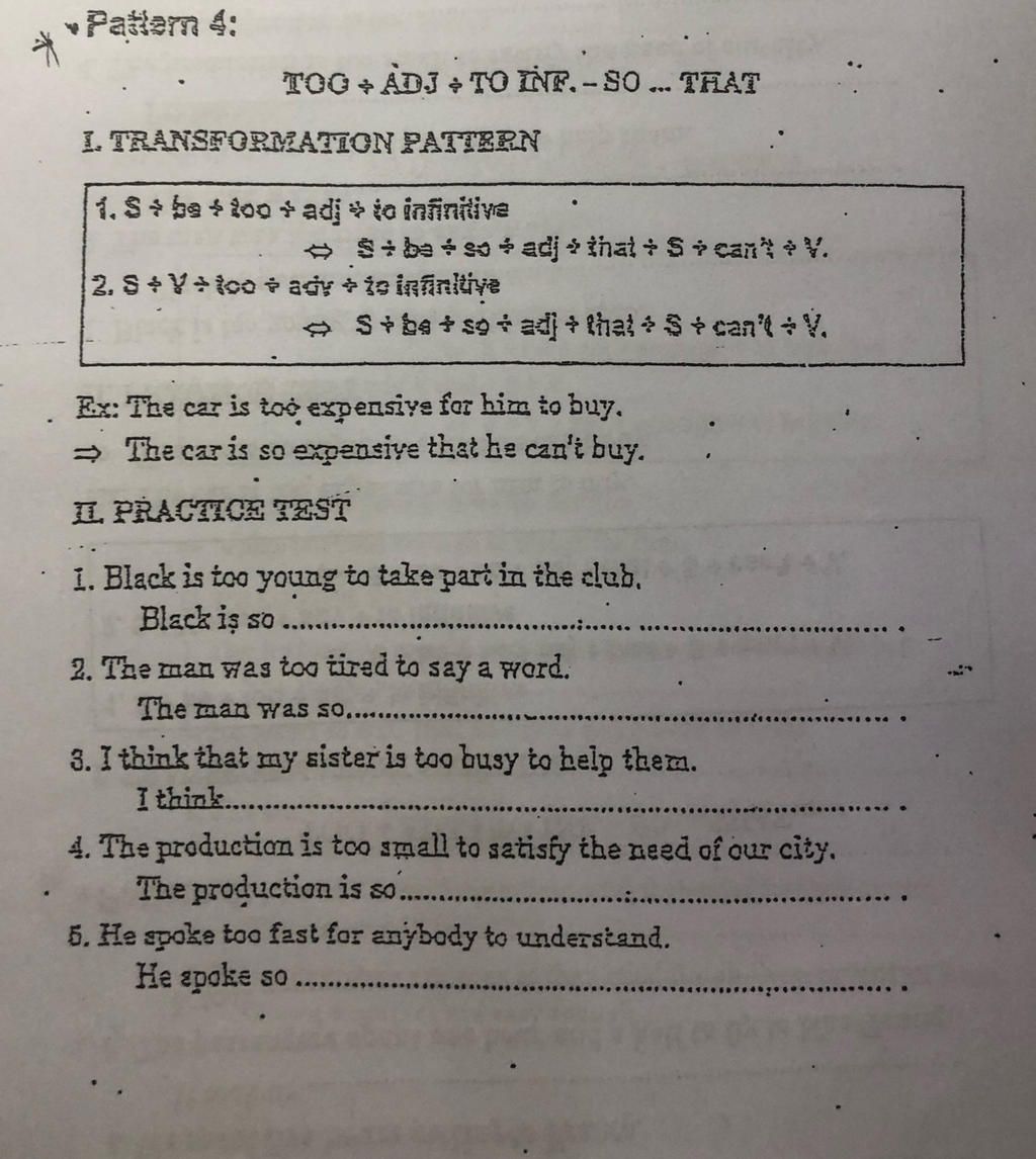`@` S + tobe/ V + too + adj/adv + to_V + O