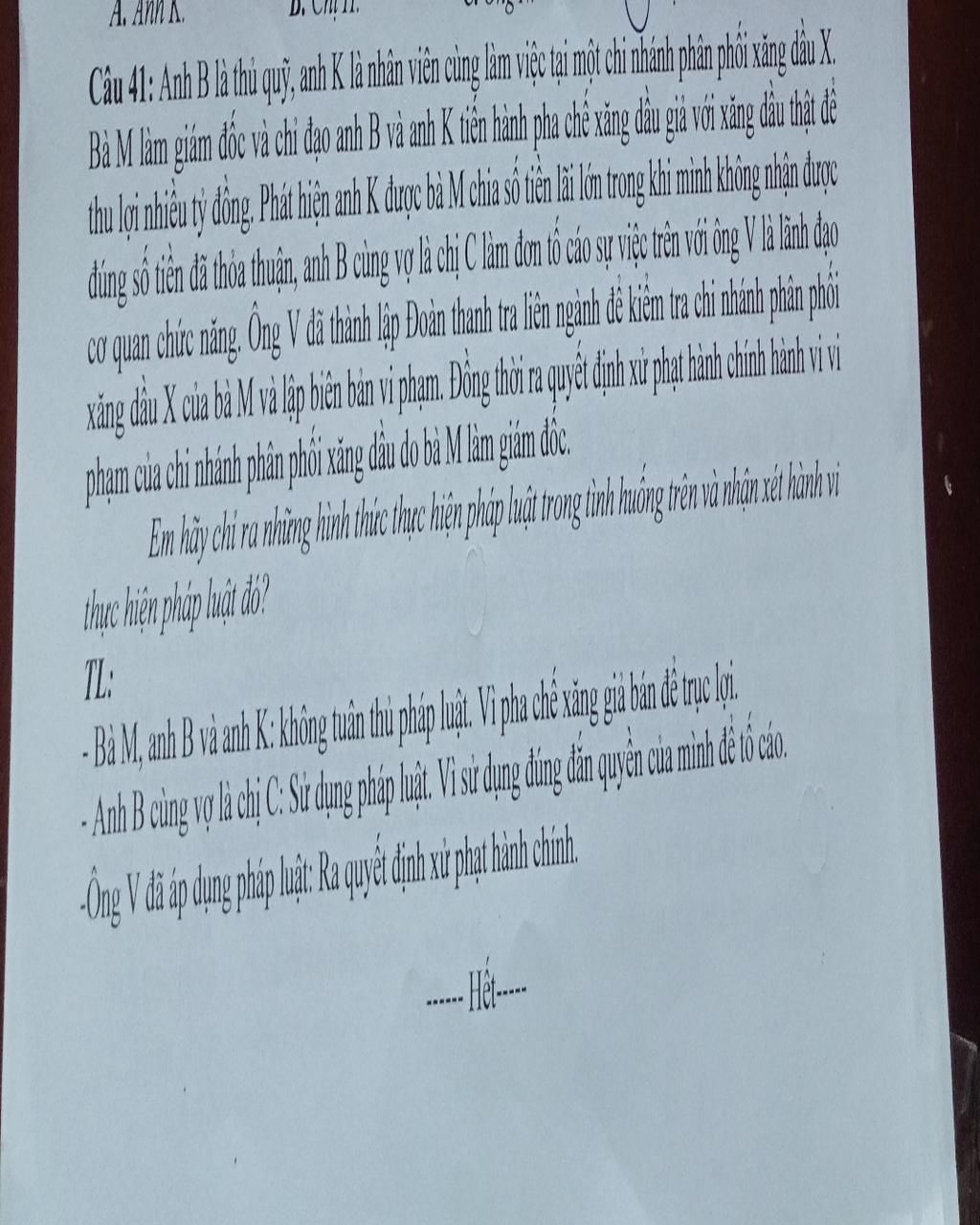 `+` Họ đã sử dụng pháp luật một cách đúng đắn khi làm đơn tố cáo hành vi phạm tội của bà M và anh K.