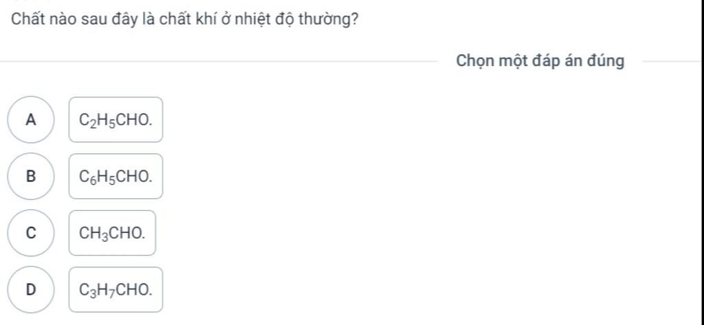 → Trong các hợp chất carbonyl , chỉ có acetaldehyde ( $CH_{3}CHO$ ) là chất khí ở điều kiện thường