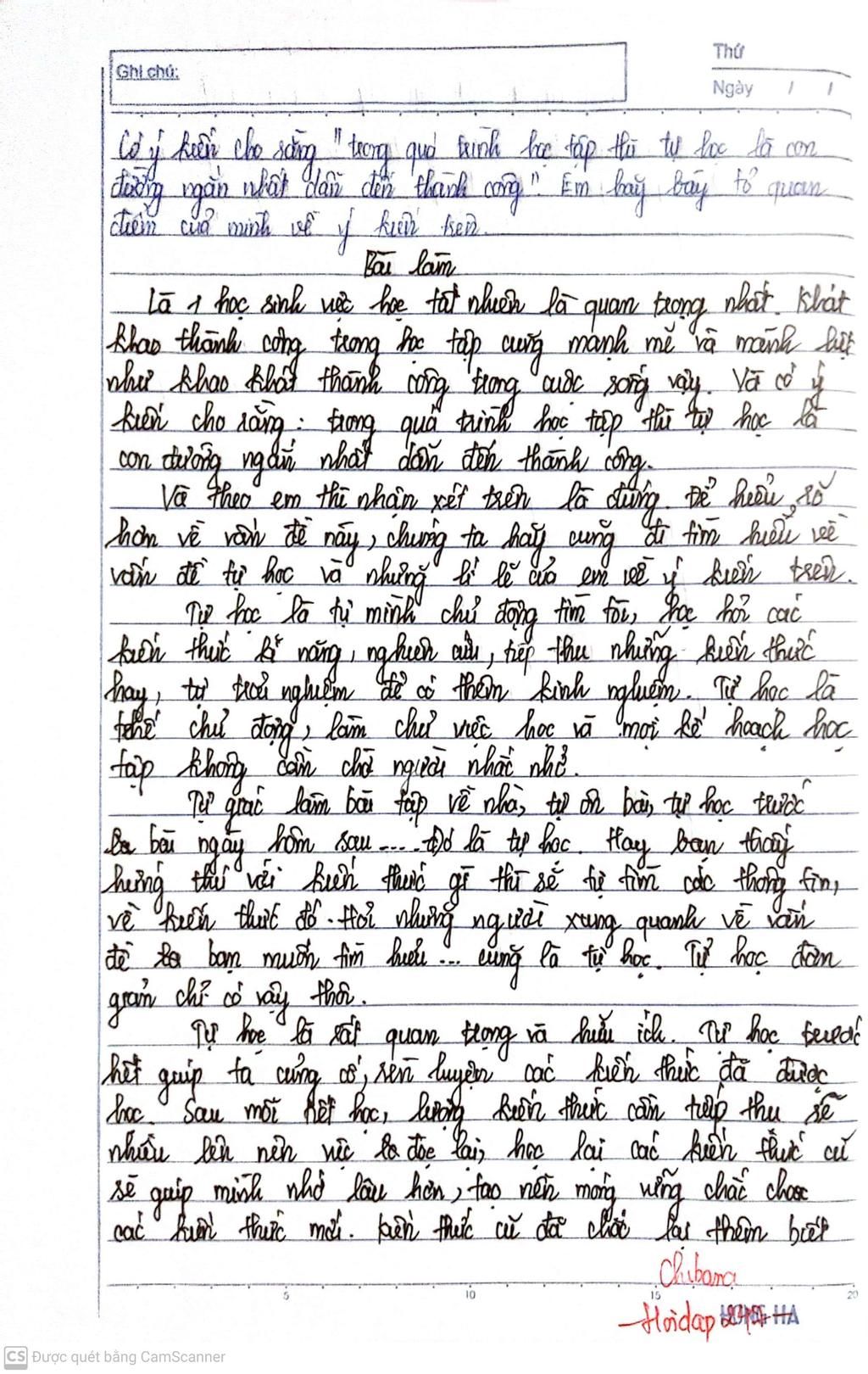 Có ý kiến cho rằng '' trong quá trình học tập thì tự học là con đường ngắn nhất để dẫn đến thành công'' .Em hãy viết bài văn bày tỏ quan điểm của mình về ý kiến trên.