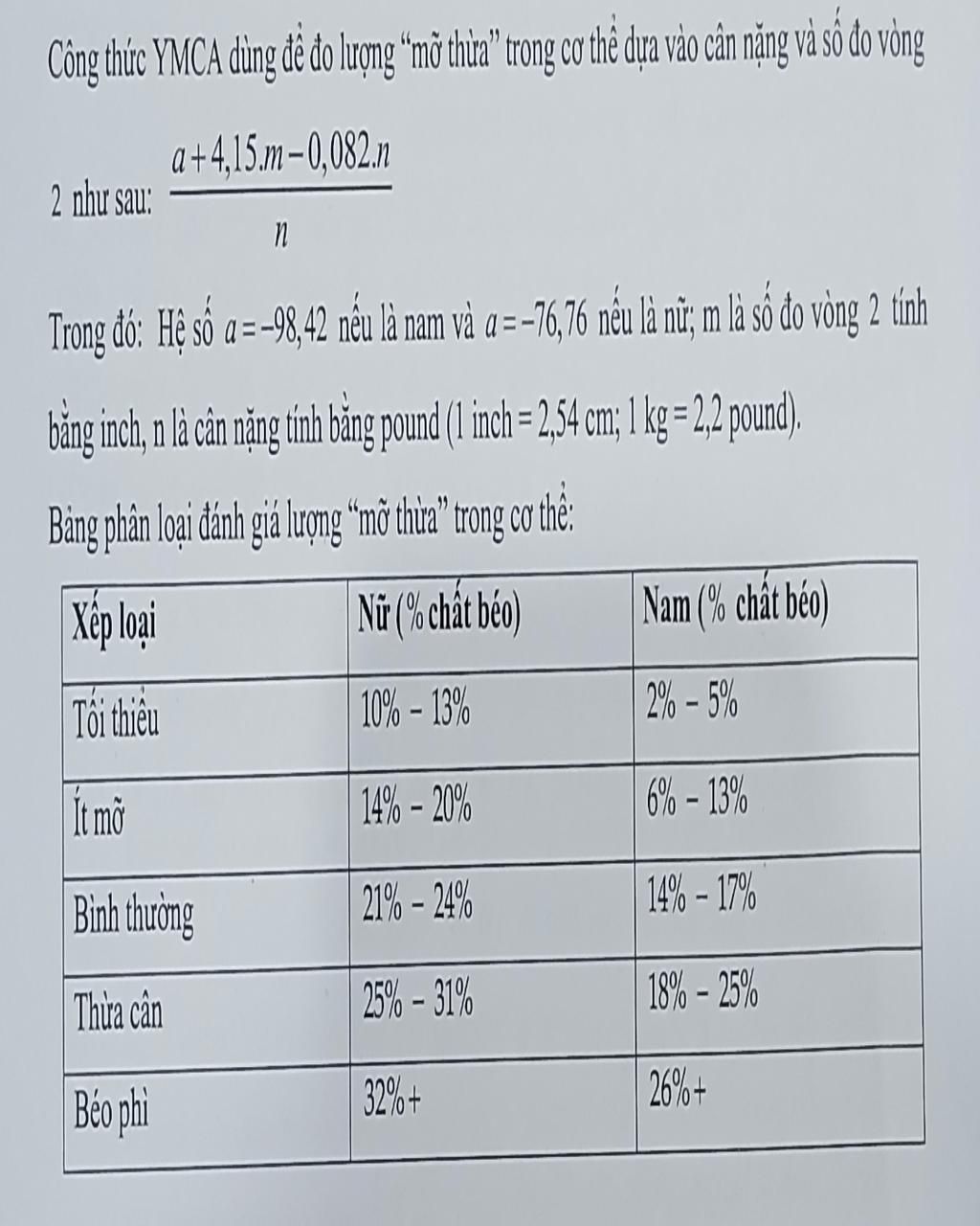 `@` Công thức `YMCA`: $\dfrac{a+4,15m-0,082n}{n}$