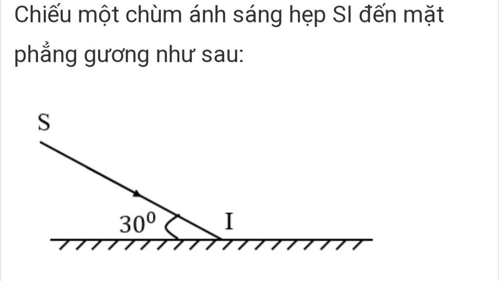Chiếu một chùm sáng hẹp SI đến mặt gương phẳng như hình. Vẽ và xác định góc tới