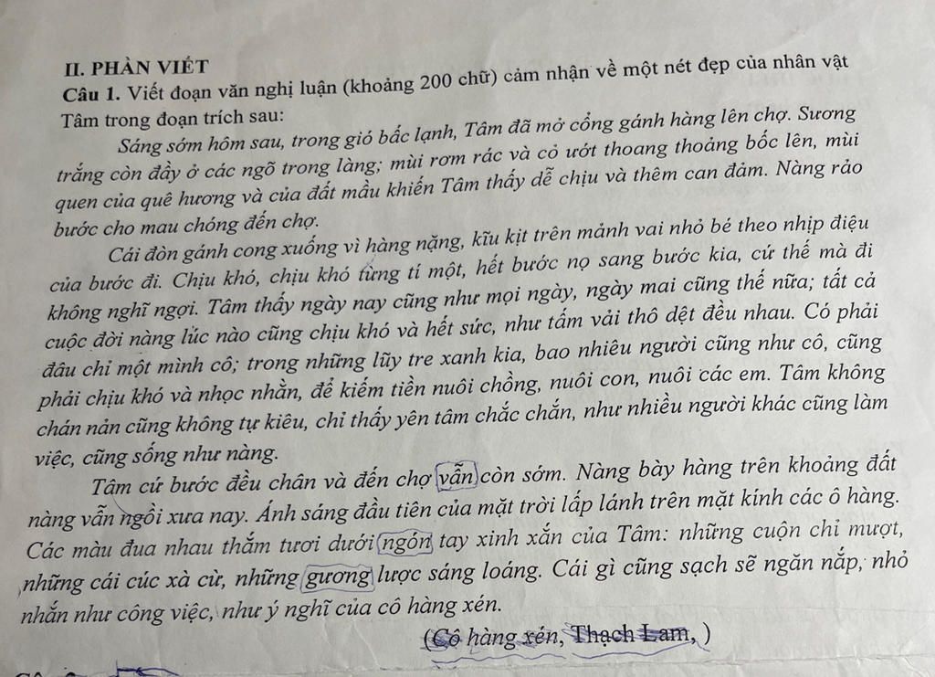 Trong văn bản Cô hàng xén của nhà văn Thạch Lam, nhân vật Tâm đã để lại trong em nhiều ấn tượng sâu sắc và tốt đẹp. Thật vậy, nhân vật Tâm hiện lên với những vẻ đẹp quý báu và tốt đẹp. Tâm là cô gái chăm chỉ, chịu thương chịu khó, lam lũ, tần tảo. Dáng đi và tâm thế của Tâm khi rảo bước mang những mặt hàng đến chợ bán đã thể hiện được sự chăm chỉ của Tâm. Chẳng những thế, Tâm còn có vẻ đẹp của tinh thần lao động, hy sinh chịu thương chịu khó, tần tảo vì gia đình. Đồng thời, Tâm cũng không bao giờ cảm thấy chán nản hay cảm thấy tự kiêu mà chỉ cảm thấy chắc chắn tin tưởng vào công việc mình làm để nuôi gia đình, các em của mình. Tâm còn là người gọn gàng ngăn nắp, dù làm công việc nhỏ bé nhưng Tâm làm bằng tất cả tình yêu thương và đức hy sinh của mình đặt vào trong đó. Từ đó, người đọc thấy được Tâm có vẻ đẹp truyền thống của người phụ nữ xưa. Tóm lại, Tâm có vẻ đẹp chăm chỉ, tần tảo, lam lũ, chịu thương chịu khó, hy sinh vì gia đình.