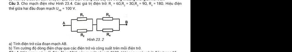 {I_3} = \dfrac{{{R_4}}}{{{R_3} + {R_4}}}.I = \dfrac{{18}}{{9 + 18}}.12,5 = \dfrac{{25}}{3}A\\
