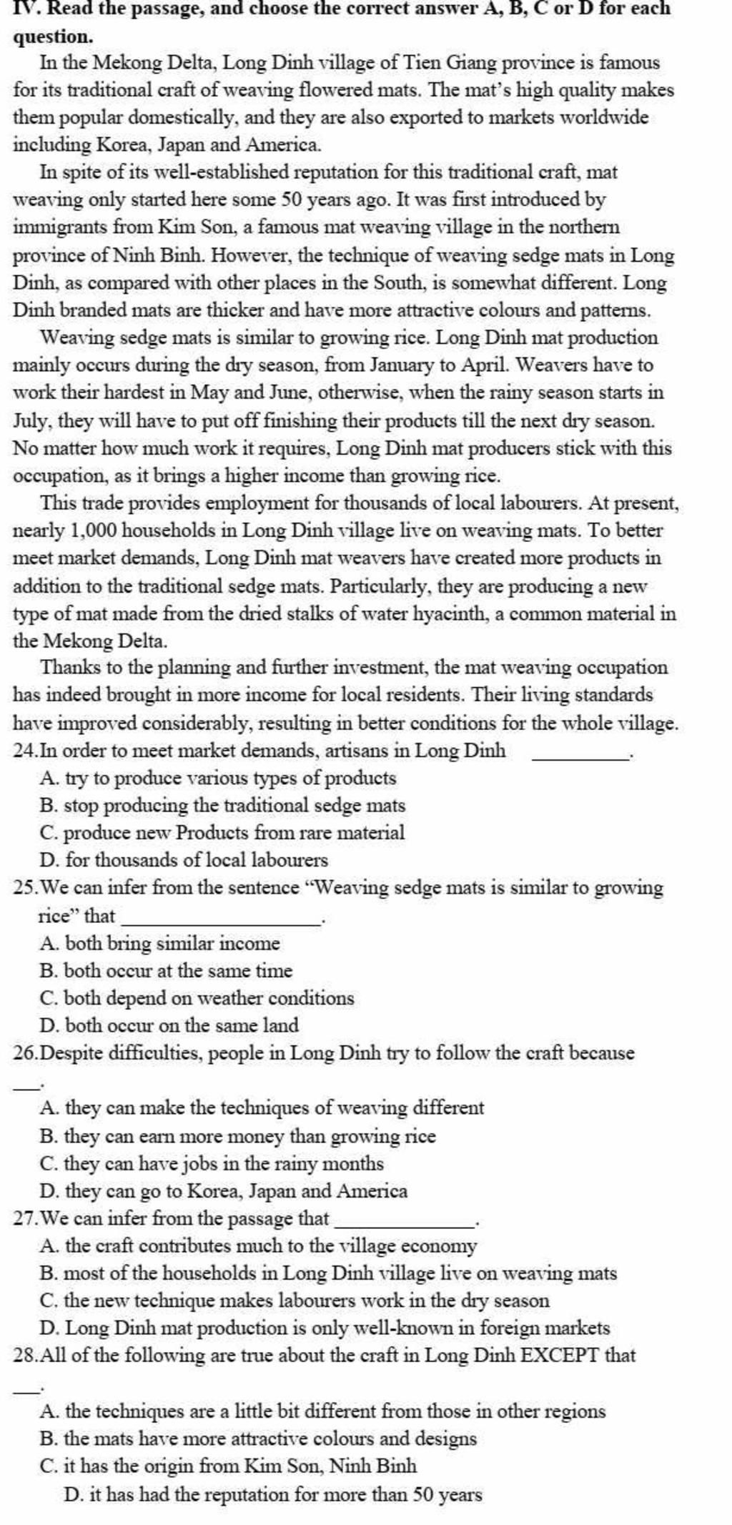 Dẫn chứng: Đoạn 4 , từ " To better meet market demands ... in the Mekong Delta"`
