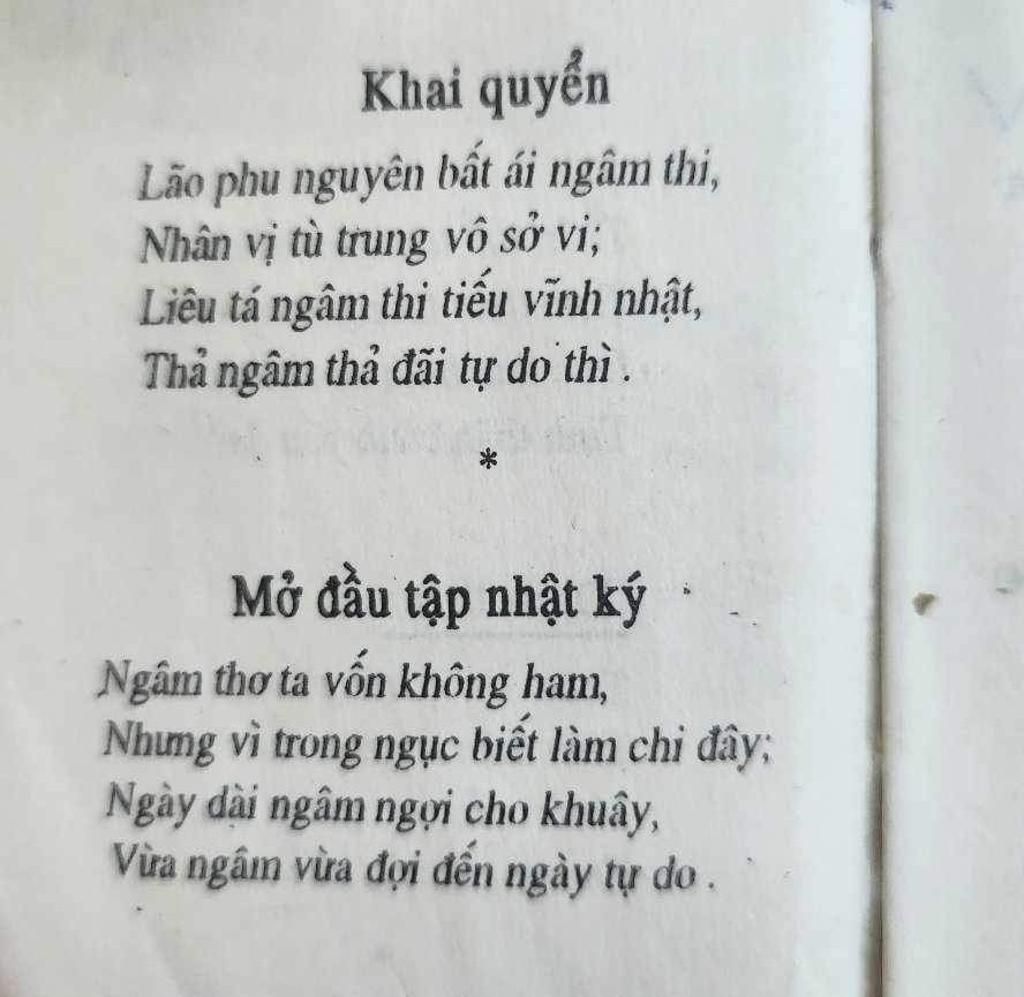 Nội dung của bài thơ "Mở đầu tập nhật ký" trong "Nhật ký trong tù" của Chủ tịch Hồ Chí Minh là nỗi lòng của người chiến sĩ cách mạng Hồ Chí Minh bị giam giữ mất tự do. Bài thơ vừa nói lên lý do viết tập thơ Nhật ký trong tù, hoàn cảnh sáng tác bài thơ và khát khao tự do của Người. Trong hoàn cảnh tù đày, Người dồn nén suy ngẫm của mình vào những vần thơ bất hủ của tập thơ Nhật ký trong tù. Bài thơ được mở đầu bằng câu thơ "Ngâm thơ ta vốn không ham / Nhưng vì trong ngục biết làm chi đây". Hai câu thơ này diễn tả được rằng ngâm thơ vốn không phải thú vui, sở trường của Bác nhưng vì ở trong hoàn cảnh tù đày dài ngày thì Người chẳng thể làm gì ngoài việc ngâm thơ. Hai câu thơ tiếp theo "Ngày dài ngâm ngợi cho khuây / Vừa ngâm vừa đợi đến ngày tự do" không những thể hiện được khí phách của người tù không sợ cảnh tù đày mà còn thể hiện được tinh thần lạc quan, hy vọng đến ngày tự do của Người.