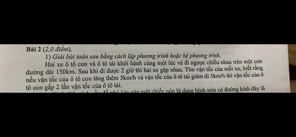 Vì cả hai xe gặp nhau sau 2h và quãng đường dài 150km, nên ta có pt: