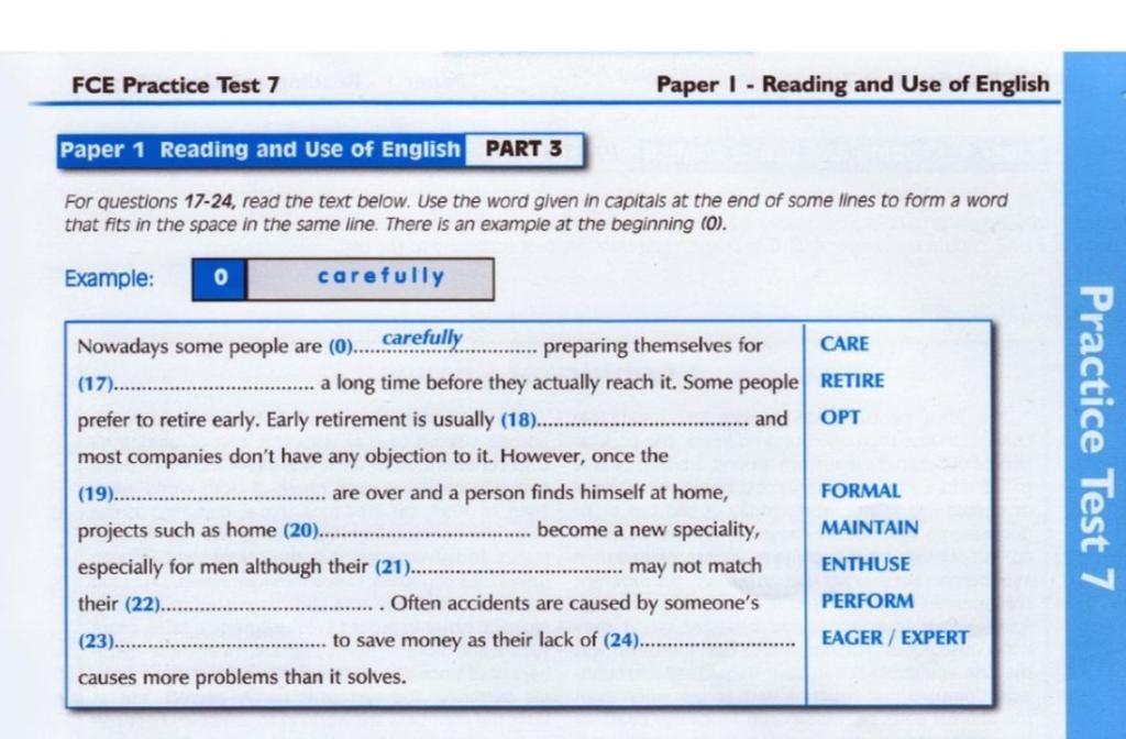 For questions 17-24, read the text below. Use the word given in capitals at the end of some lines to form a word