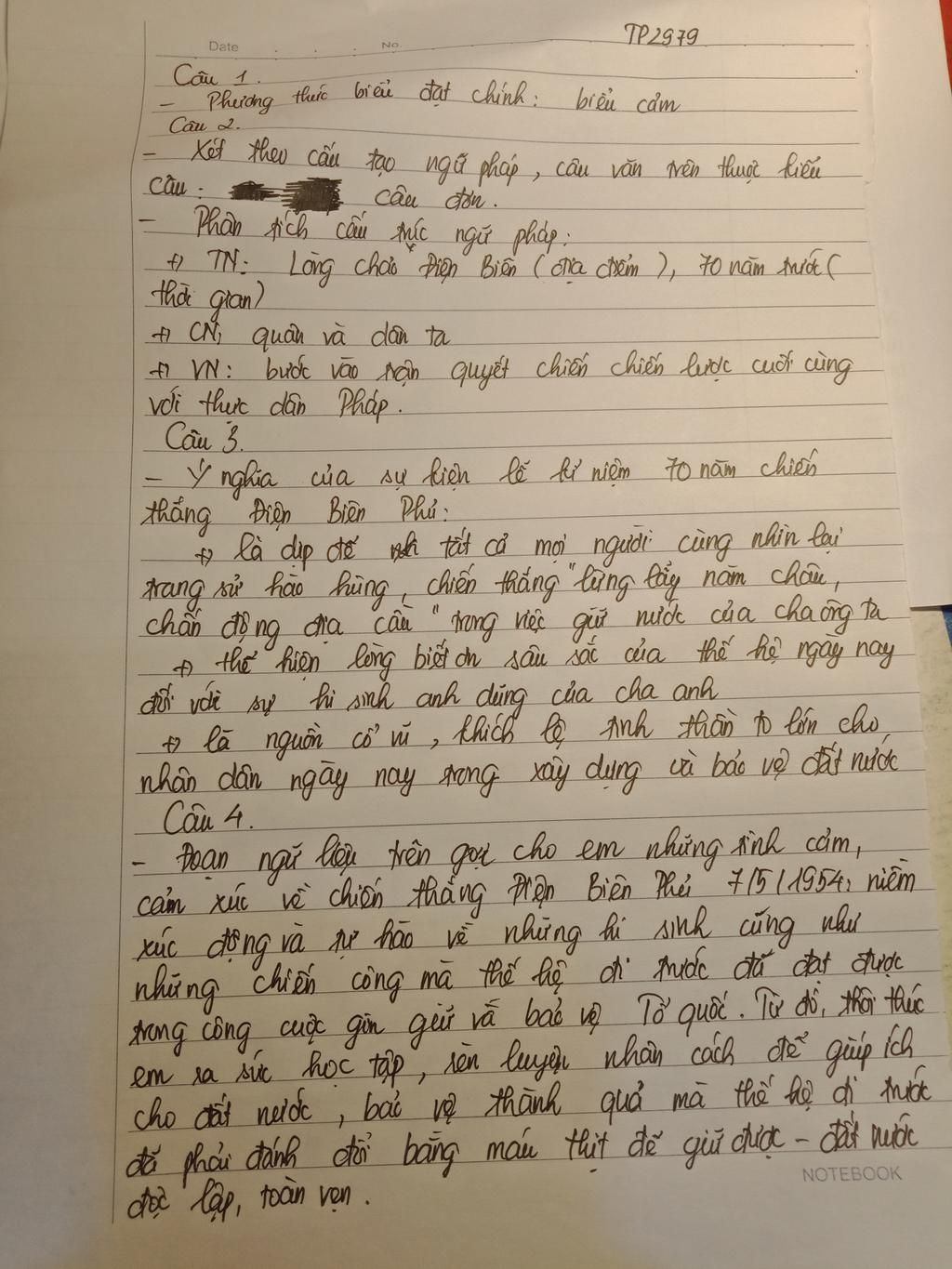 Câu 4 (0,5 điểm). Đọc ngữ liệu trên gợi cho em có những tình cảm, cảm xúc gì về chiến thắng Điện Biên Phủ 7/5/1954