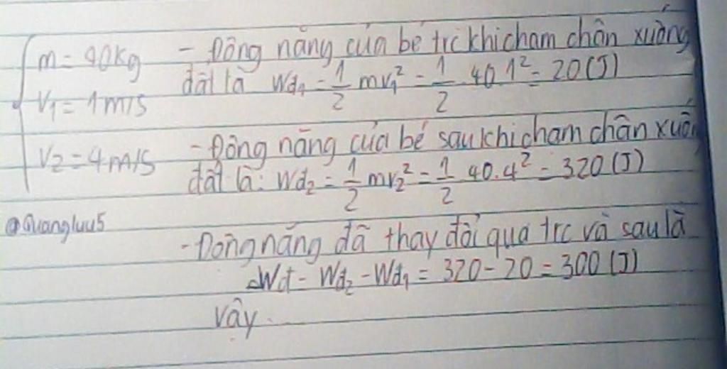 $W_{đ1} = \frac{1}{2}mv_1^2 = \frac{1}{2}.40.1^2 = 20 J$