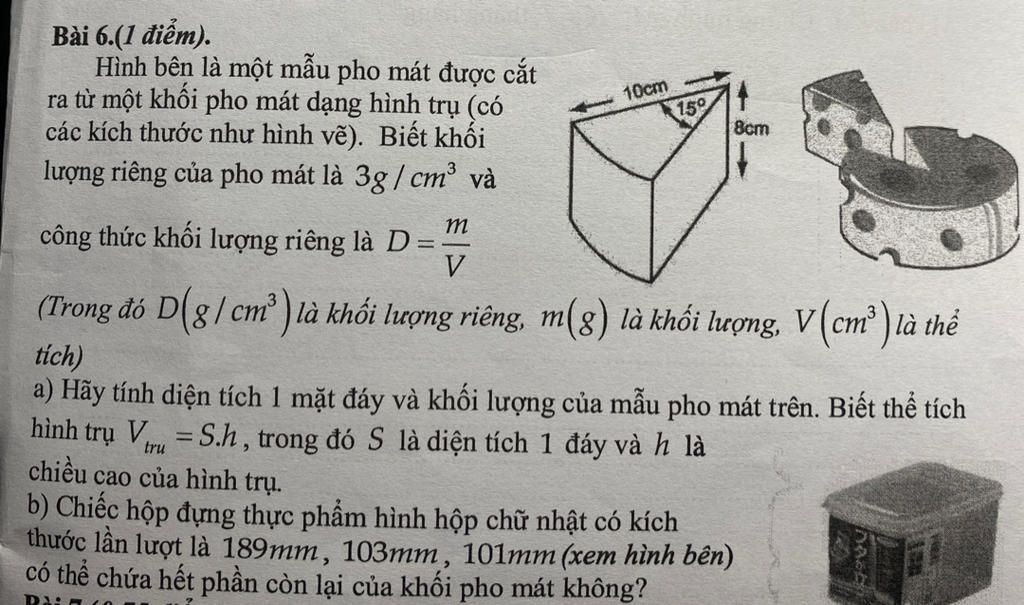 (Trong đó D(g / cm) là khối lượng riêng, m(g) là khối lượng. V ...