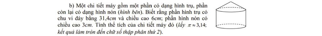 Vậy thế tích của chi tiết máy khoảng`549,50 cm^3`