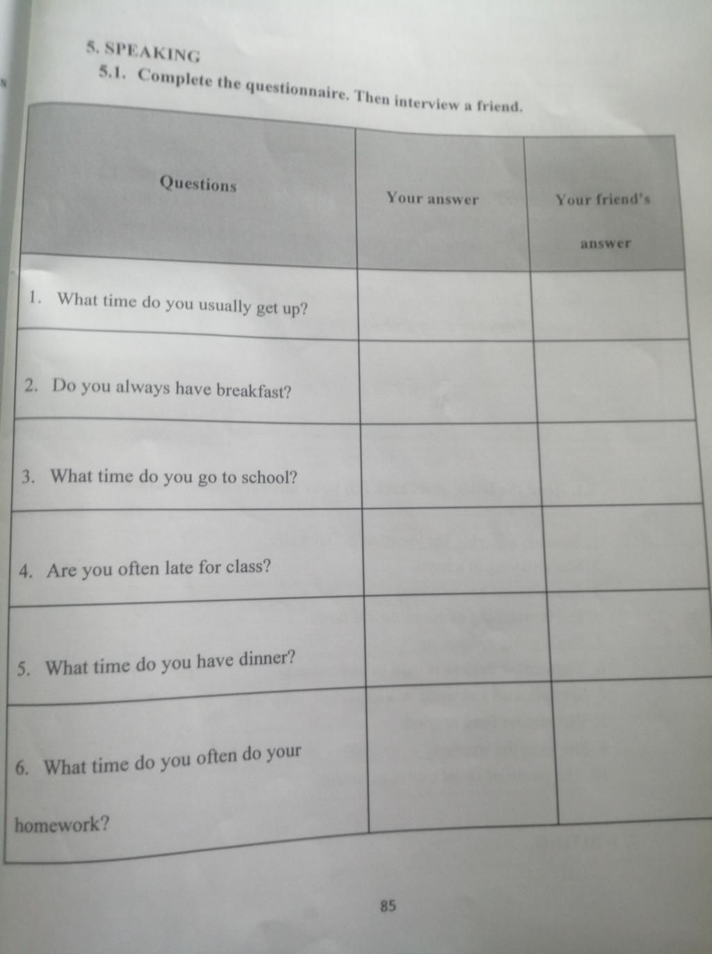 1. I usually get up at 5.30 a.m/ My friend usually gets up at 5.45 a.m