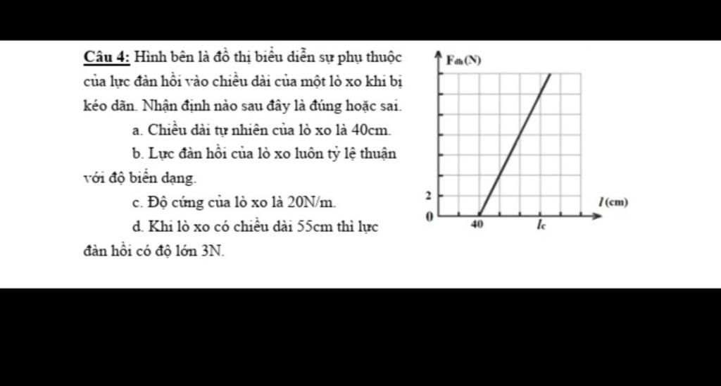 a) Chiều dài tự nhiên của lò xo là 40cm vì khi đó lực đàn hồi bằng 0.