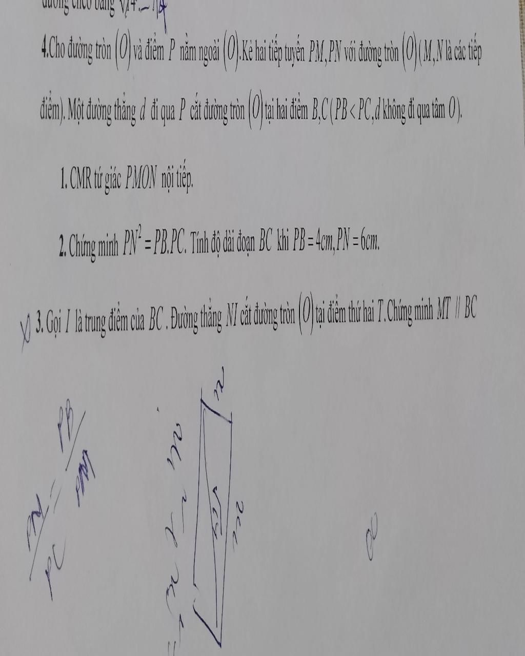 Mà góc NMP=góc MTN (góc nội tiếp và góc tạo bởi tiếp tuyến và dây cùng chắn cung MN của (O))