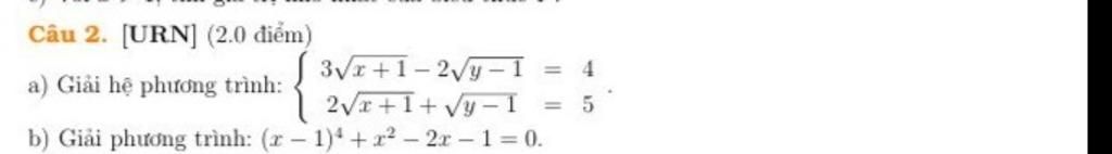 Đặt `{(a = sqrt[x + 1]),(b = sqrt[y - 1]):} (a ; b >= 0)`.HPT trên trở thành:
