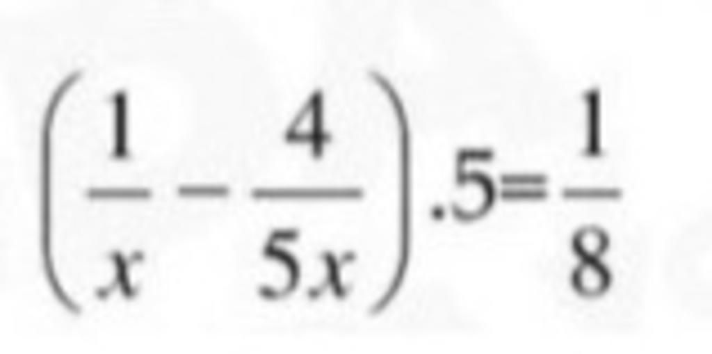 `(1/x - 4/(5x)) . 5 = 1/8(x \ne 0)`