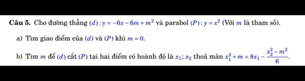 Vậy giao điểm của `(d)` và `(P)` khi `m=0` là `A(0;0)` và `B(-6;36)`
