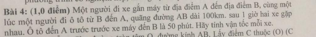 Theo bài, xe ô tô đến A sớm hơn xe máy đến B 50 phút nên: