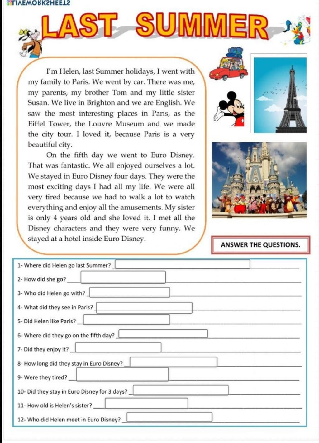1. Where did Helen go last summer ?