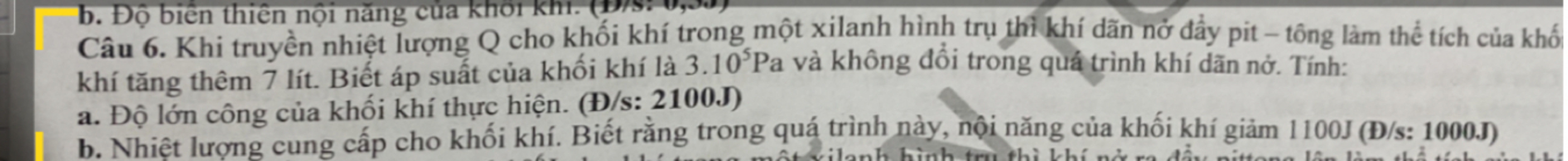 `<=> Q = A' + DeltaU = 2100 - 1100 = 1000 (J)`