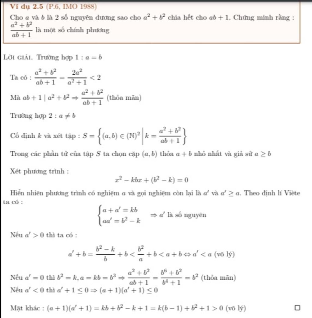 Cho a và b là 2 số nguyên dương sao cho a + b chia hết cho ab +1. Chứng minh rằng :
