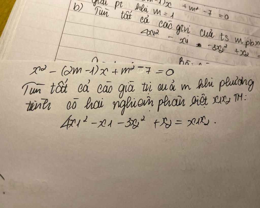 $\to \begin{cases}x_1+x_2=2m-1\\x_1x_2=m^2-7\end{cases}$