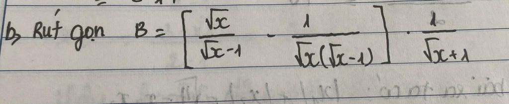 `B = ( (sqrt{x})/(sqrt{x} - 1) - 1/(sqrt{x}(sqrt{x}-1)) ) . 1/(sqrt{x} + 1)`