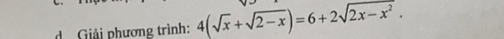 `<=>4(sqrt{x}+sqrt{2-x})=6+2sqrt{x(2-x)}`