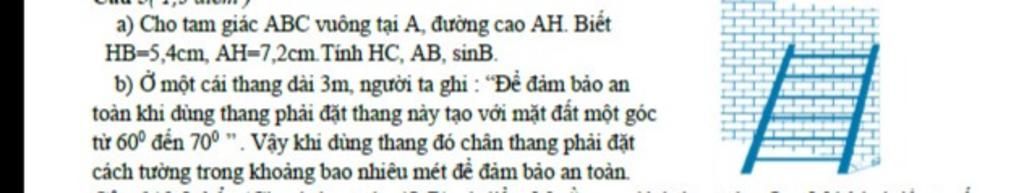 b) Ở một cái thang dài 3m, người ta ghi : “Để đảm bảo an