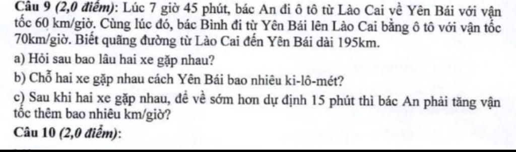 `c,`Thời gian dự định để bác An đi lên Yên Bái sau khi `2` xe gặp nhau là: