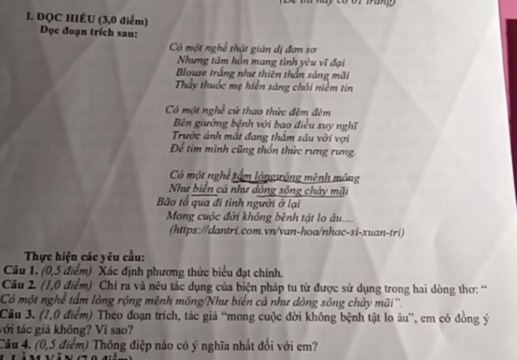 + thể hiện thái độ ngợi ca, trân trọng của tác giả dành cho những người làm trong ngành Y