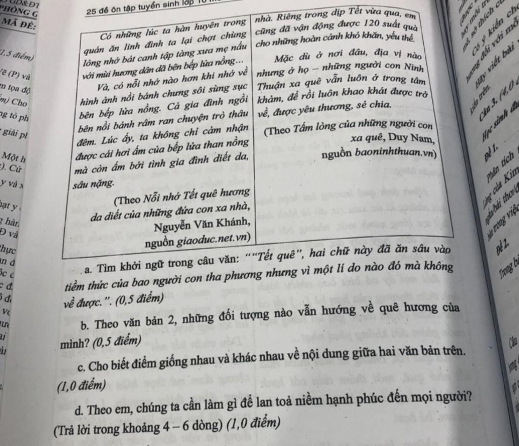 b. Không chỉ kiều bào, là những người xa quê thành đạt, mà đáng trân quý hơn cả là nhiều bạn trẻ đang học tập, làm việc ở tỉnh, thành phố khác vẫn thầm lặng hướng về nơi "chôn rau cắt tốn" bằng cách riêng của mình