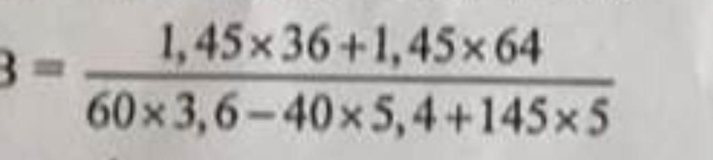 `B=(1,45×36+1,45×64)/(60×3,6-40×5,4+145×5)`