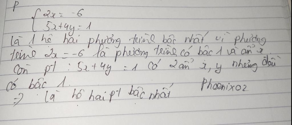 có phải là một hệ hai phương trình bậc nhất không ,vì sao?