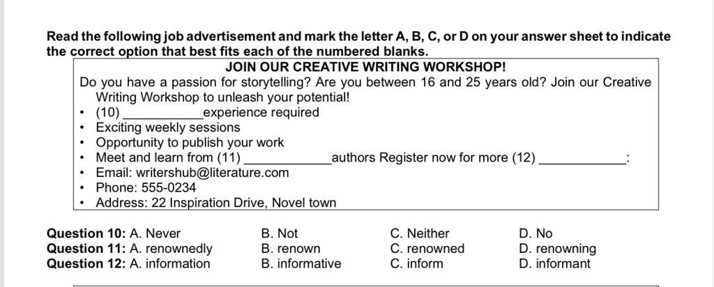 `-` Loại `B`. renown là `1` danh từ