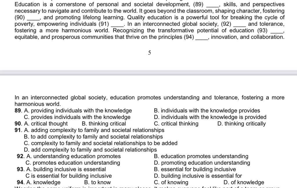 câu cuối em nghĩ là D principles of knowledge có vẻ hợp lý hơn bởi lẽ trong câu không có dấu phẩy nên knowledge và những noun sau đó vẫn có khả năng bổ nghĩa cho principles ạ điều đáng nói hơn là principle còn đang đóng vai trò là số nhiều có cả mạo từ xác định là the nữa nên phía sau có lẽ có từ giải thích cho principles Ý kiến riêng của em nếu sai mong anh có thể chỉ lại Rút gọncâu cuối em nghĩ là D principles of knowledge có vẻ hợp lý hơn bởi lẽ trong câu không có dấu phẩy nên knowledge và những noun sau đó vẫn có khả năng bổ nghĩa cho principles ạ điều đáng nói hơn là principle còn đang đóng vai trò là số nhiều có cả mạo t... xem thêm