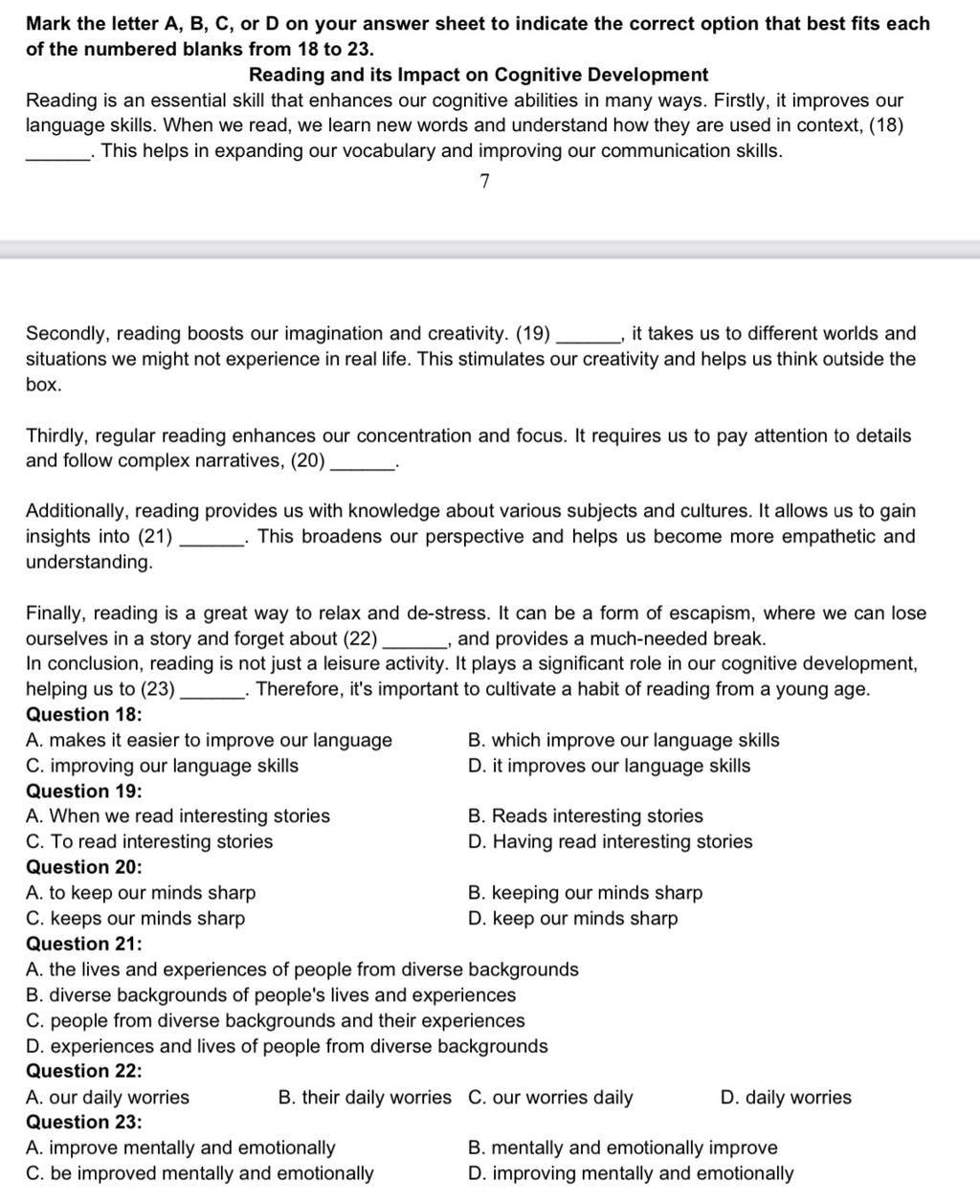 Cho mình hỏi câu 18, nếu which thay thế cho 1 cụm SVO thì động từ improve theo sau phải thêm "s" chứ?