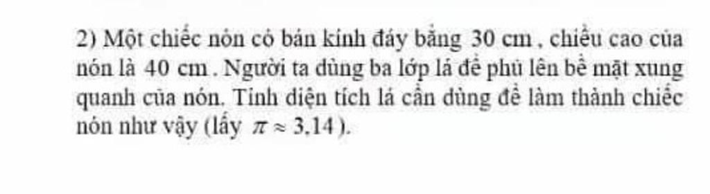 Diện tích là cần dùng để làm thành chiếc nón như vậy là: