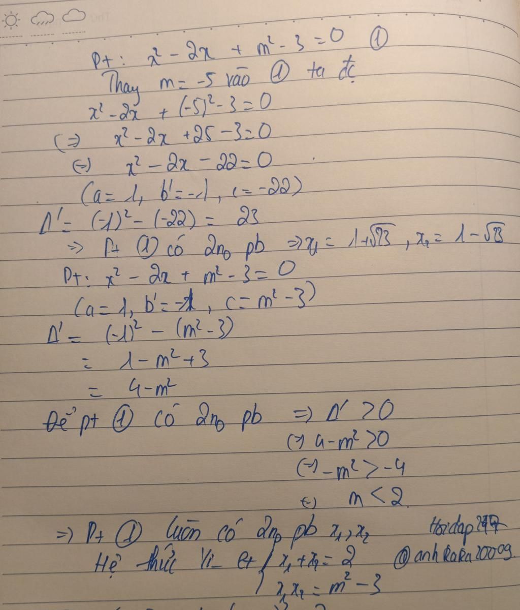 b, tìm giá trị của m để pt có 2 nghiệm phân biệt x1 ; x2 thỏa mãn 3x1 + 4x2 (x1 - x2)^2 =7